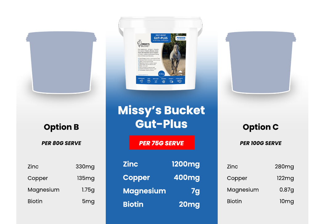 Our formula is designed to provide your horse with exactly what they need - featuring high levels of Copper and Zinc, and no iron. It works to balance the mineral ratios in your horse's diet for optimal health.